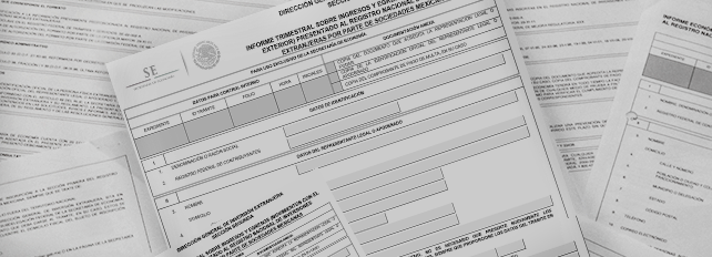 I. Solicitud de Inscripción ante el Registro Nacional de Inversiones Extranjeras. (descargar formato) II. Aviso de Actualización Trimestral. (descargar formato) III. Informe económico anual (Renovación de inscripción). (descargar formato) IV. Cancelación de inscripción. (descargar formato)
